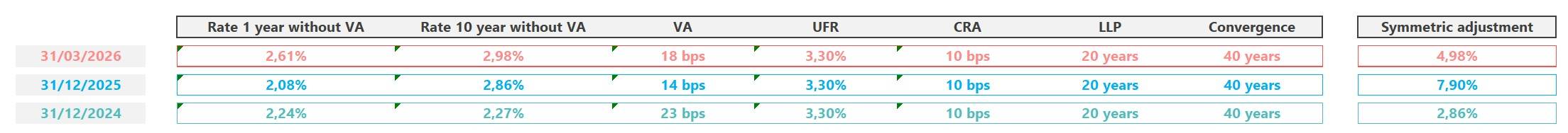 Each month, EIOPA publishes a set of technical parameters used to produce the economic balance sheet, the SCR and the solvency ratio: