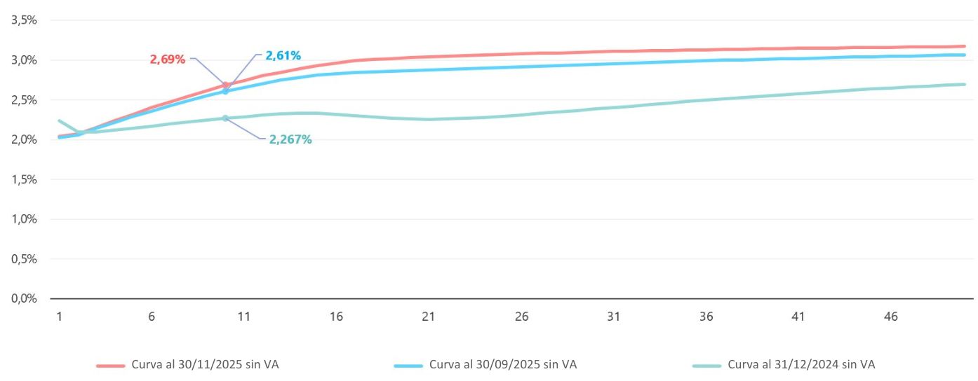 Para obtener más información sobre las metodologías de EIOPA para el cálculo de la curva de rendimiento sin riesgo y el ajuste por volatilidad, puede consultar la documentación técnica completa de EIOPA aquí.