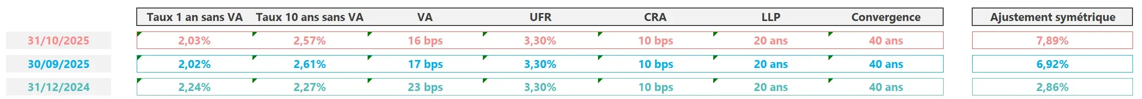 Chaque mois, l’EIOPA publie un ensemble de paramètres techniques utilisés pour la production du bilan économique, du SCR et du ratio de solvabilité :
