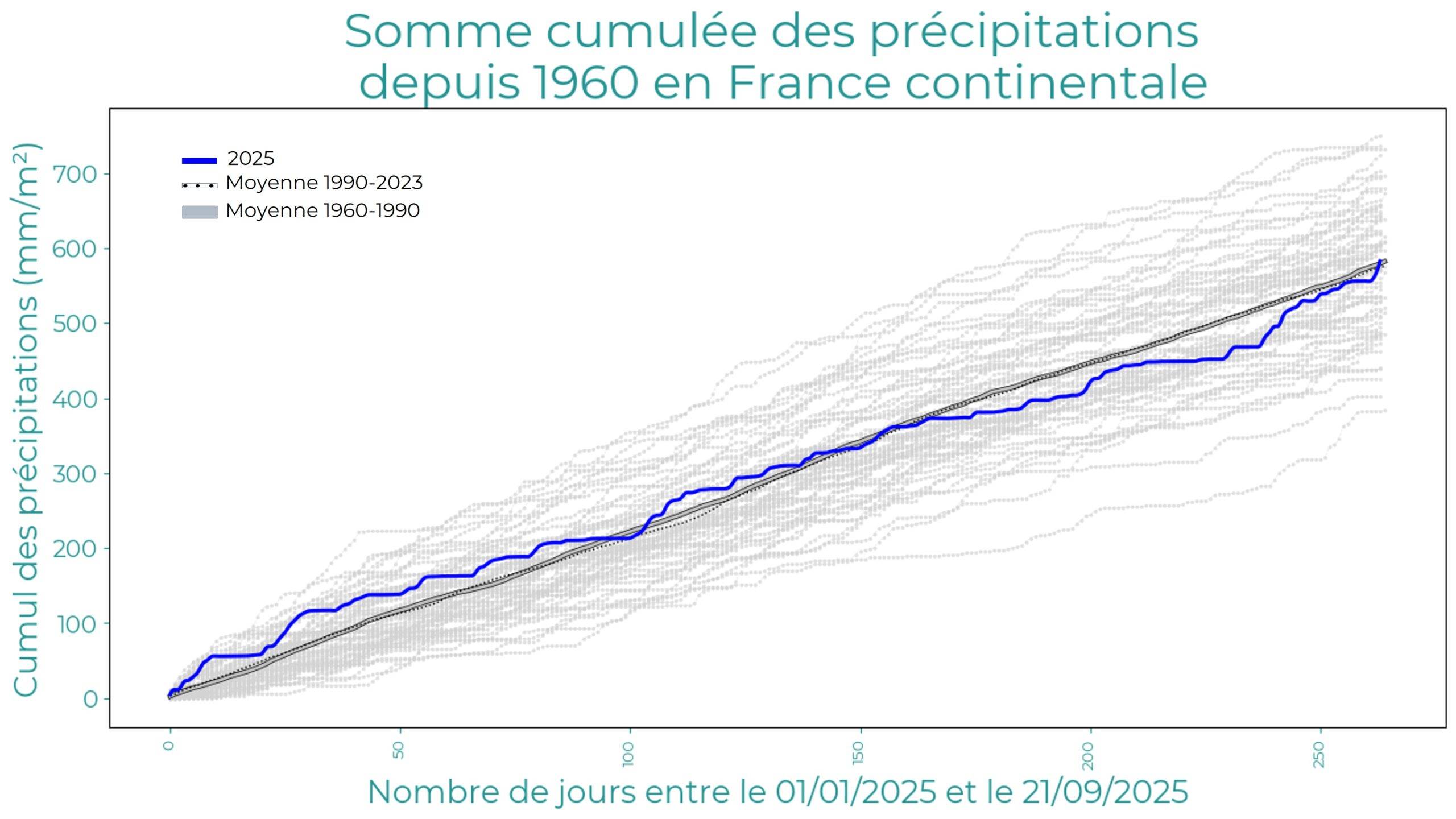 La période entre le 21/03/2025 et le 21/09/2025 a été caractérisée par des températures très supérieures à la moyenne. On compte moins d’une dizaine de jours en dessous.